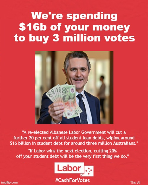 Labor's $16 billion election bribe is costing 20 million Australians $800 each. And they talk about it like it's a good thing.