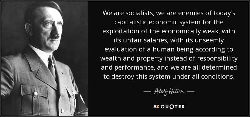 Yet if you publicly point out that the National Socialist German Workers’ Party were in fact socialists, you’re likely to be met with scorn and derision. Often coming from people whose only basis for calling the Nazis “far-right” is that that’s what they’ve always been told. If they offer any argument at all, it’s usually just one of the stock rationalisations invented by socialists to distance themselves from the Nazis. These include: